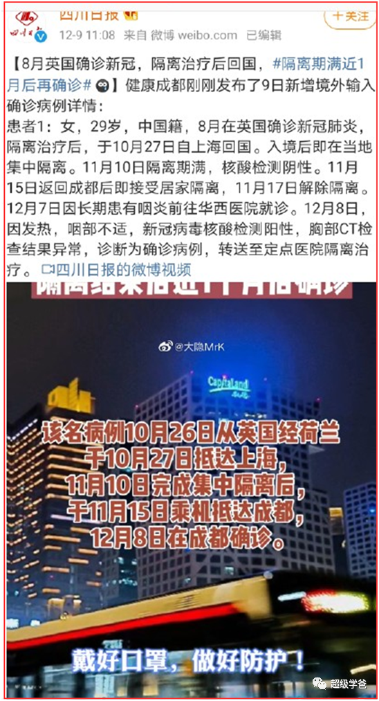 千萬不要覺得跟中國沒關係,12月8日四川確診一位29歲的女性患者,她8月份在英國確診過一回;10月27日回國。經過隔離後12月8日再次確診。