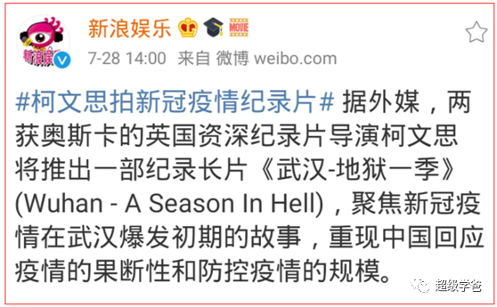 今年夏天,英國導演柯文思拍了一部紀錄片,聚焦新冠疫情在武漢揭蓋之後的故事,但是這部片子的名字叫《武漢——地獄一季》。