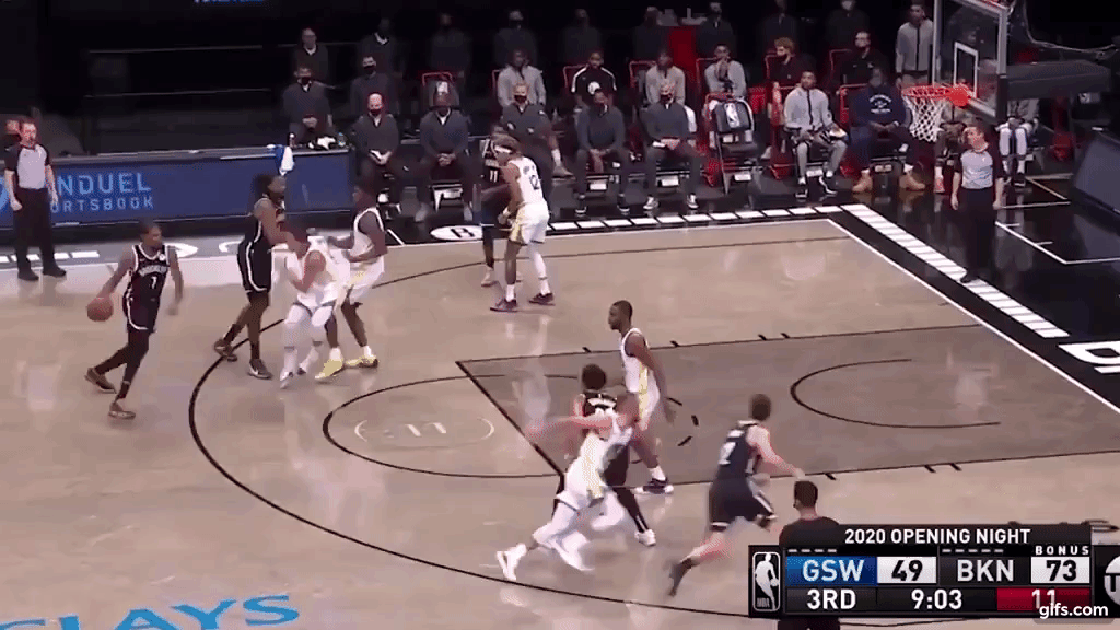網今天對勇士,開場第一回合,針對庫裏持球,就是一個高位夾擊和強側收縮。