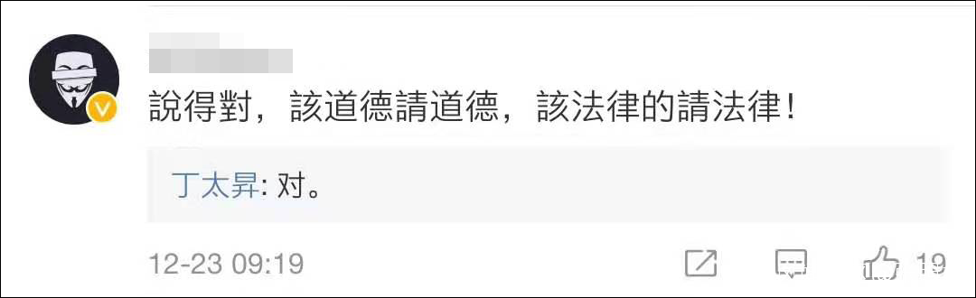 在評論區與網友的互動中,丁太升也對這種觀點表示了支持。