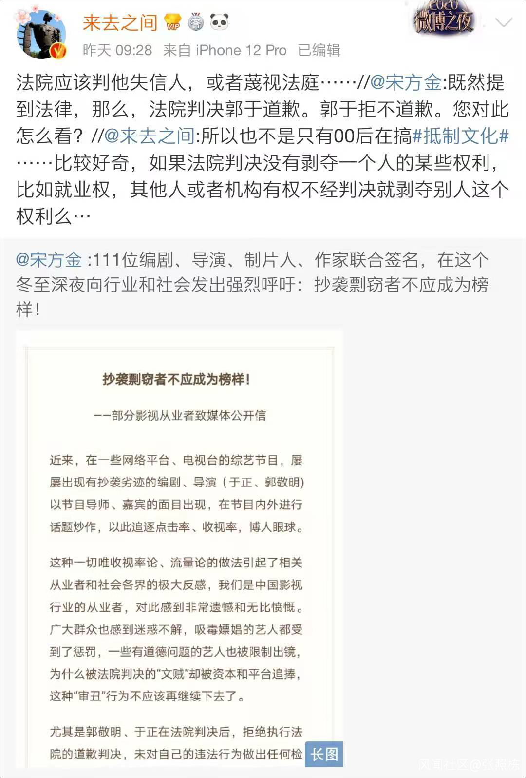 汪海林、宋方金等百名影視從業者聯名抵制郭敬明、於正的瓜越滾越大。