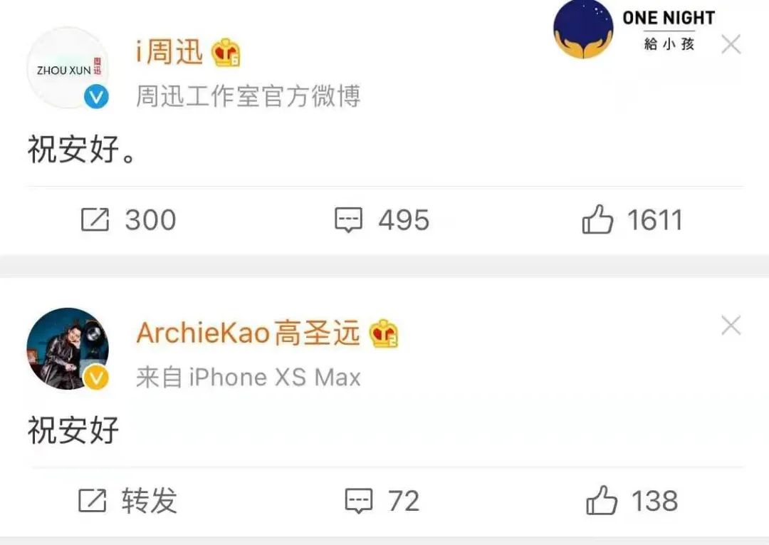 今天中午,周迅和高聖遠在微博雙雙用了“祝安好”三個字,官宣了離婚的消息。