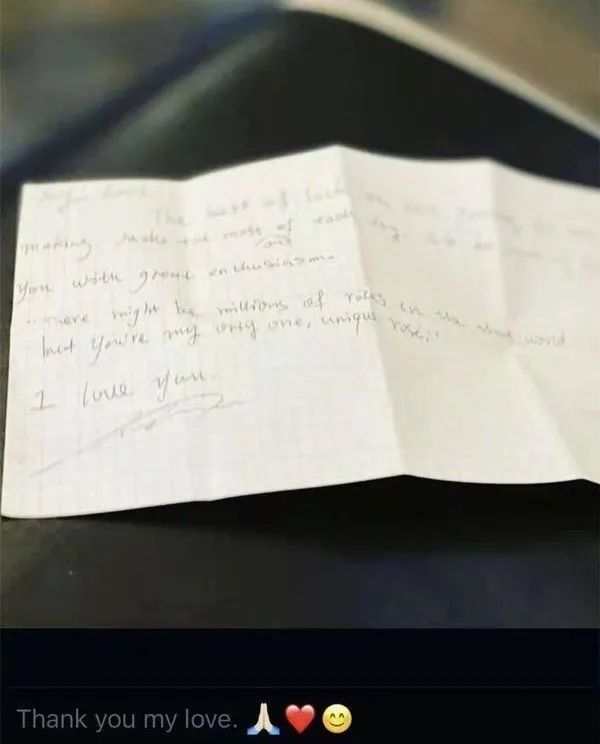 在幾天前,她又發佈了另一張照片,照片中有一封疑似高聖遠親手寫的表白情書,文字極其肉麻: