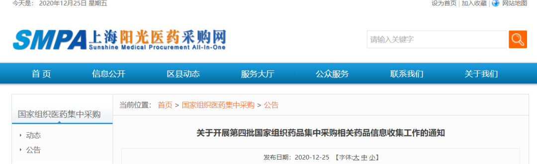 今天下午,上海陽光采購網印發通知稱,國家聯合採購辦公室正式開展第四批國家組織藥品集中採購。