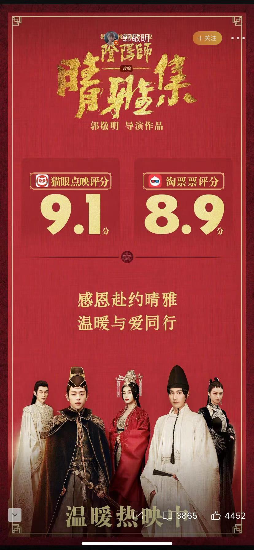 這和郭敬明此前分享的各大網站評分差距懸殊。