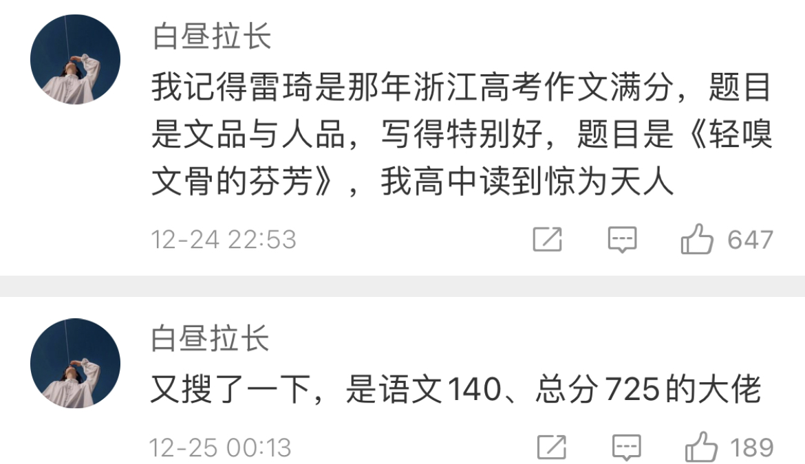 消息一出,網友紛紛感嘆四位小姐姐的優秀。還有人稱,第一位獲獎者雷琦就是2015年浙江高考滿分作文《輕嗅文骨的芬芳》的作者。