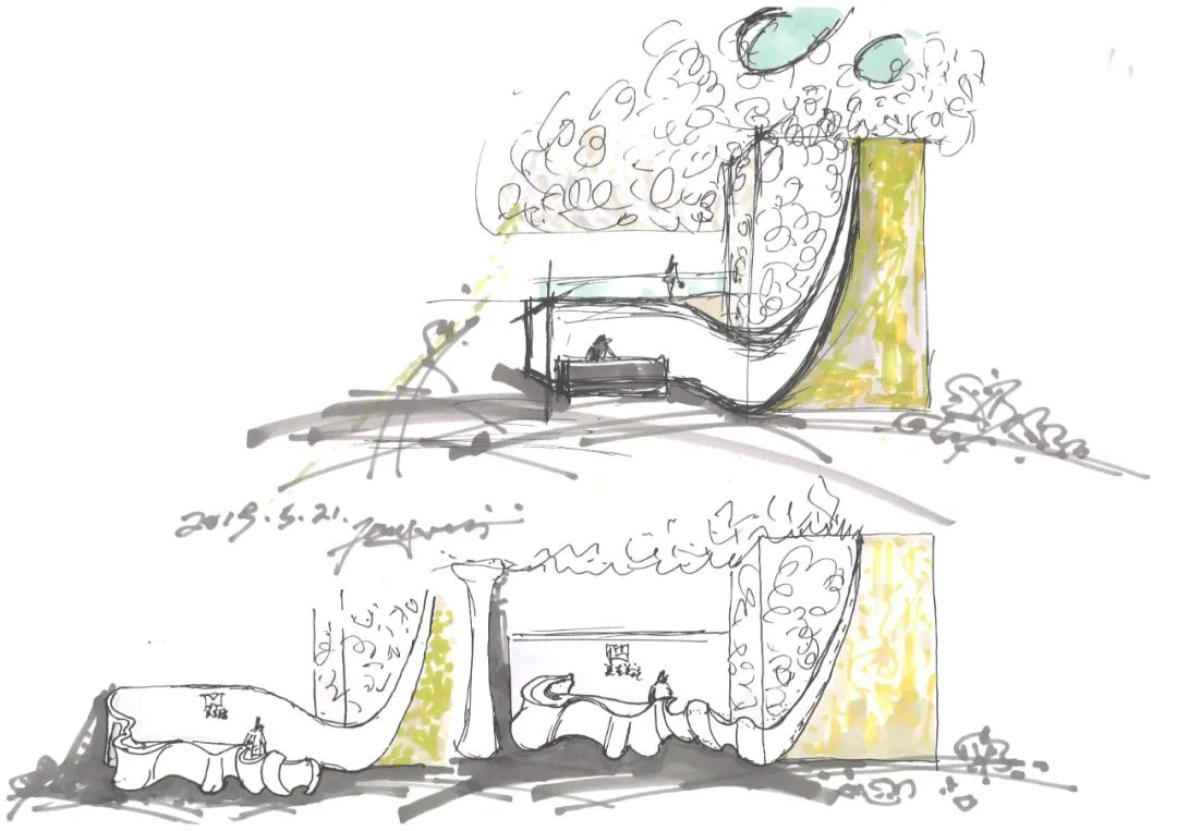 草稿紙上的“鬼畫符” ,實則名為“風之翼”,是順風航行的帆船意象,更是大師弗蘭克·蓋裏熱衷於在垃圾箱裏尋找靈感的日常行為。