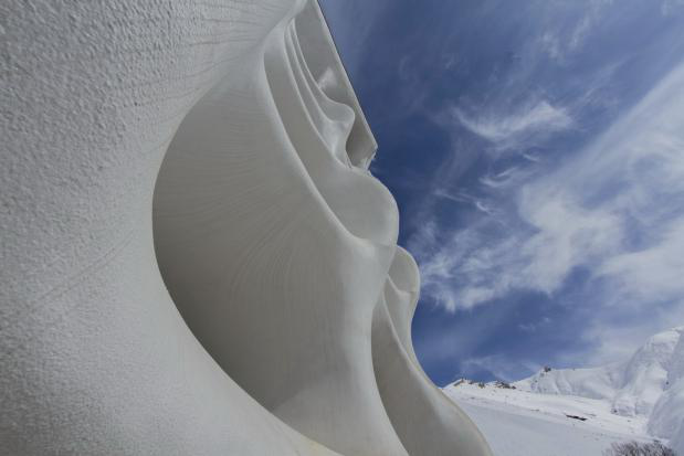 在設計中,以地形的層次感取代了原本的冰磚結構,並在水平方向不斷層疊線條,塑造出建築的圓頂形式。