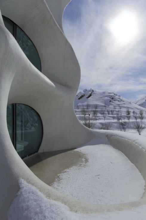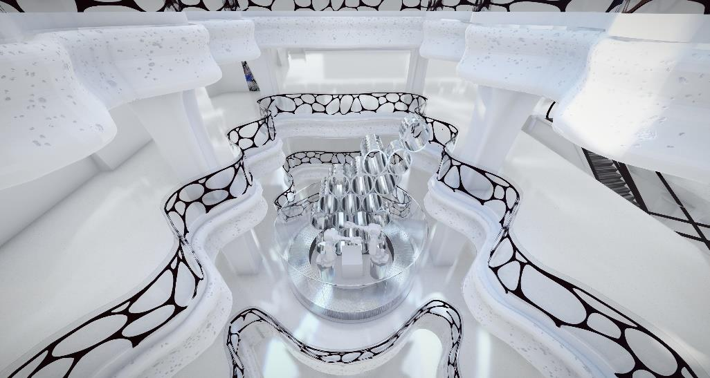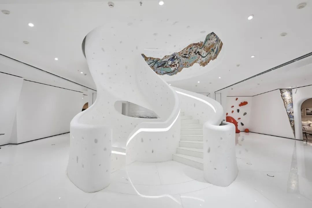 當白色被充滿未來感的弧形無限拉長,當陽光從具象化的頂部圓洞照射而來,空氣、水、陽光所有的元素匯聚成海。