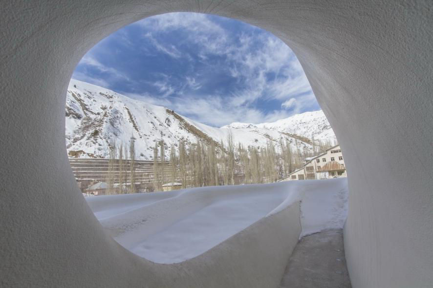 洞內,潔白如霜,洞外,遍地白雪,一洞兩景,景景相扣,讓人不得不讚嘆,自然是人類最好的老師。