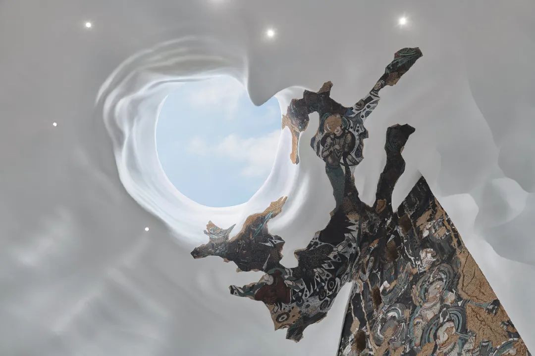 作為建築內部的採光井,龜茲洞天借鑑克孜爾“大像窟”頂部開口的設計,以獨具設計感的造型,將建築頂部的自然光引入室內,成為“別有洞天”的最詩意詮釋。古與今、天與地,在此相融於一瞬。