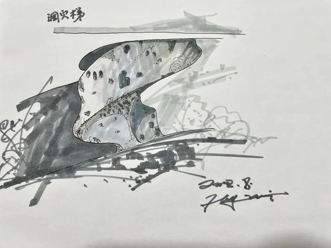 它以“洞穴”作為意象,融合了西域白雅丹地貌及龜茲風格,將古典構建的形式組合在一起,營造出了別樣的“穴居”文明。