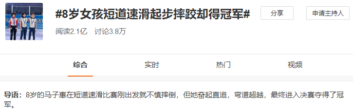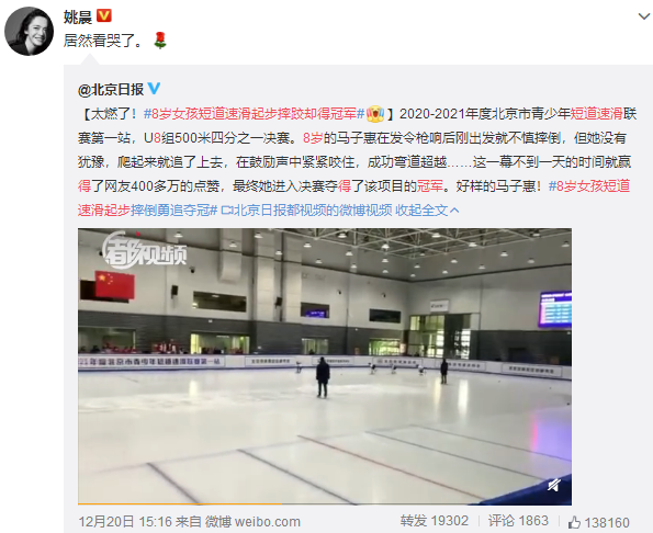 視頻下面,也有很多網友紛紛留言表示感動,很多人誇讚年僅8歲的馬子惠心理素質很強,誇讚她起步摔倒還能逆襲奪冠,説明實力強悍,如果不是受摔跤影響,甚至可能遠超其他選手一個圈贏得比賽。