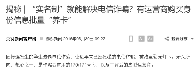 眾所周知,我們國家一直在嚴打電信詐騙。其中一環就是對所有手機號卡進行實名,確保能夠對電信詐騙活動追蹤到人,以此進行威懾。