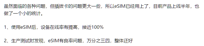 可以説, eSIM 技術在國內逐漸開始落地,對智能製造產業的創業者已經起到了一定的幫助。