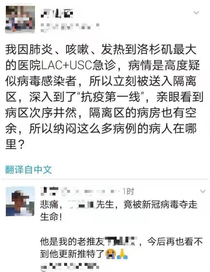 然後,這位公知很快被新冠病毒奪走了生命,在他的最後一條推文下面,有人揭示了他看到美國醫院有空牀位背後殘酷的真相。