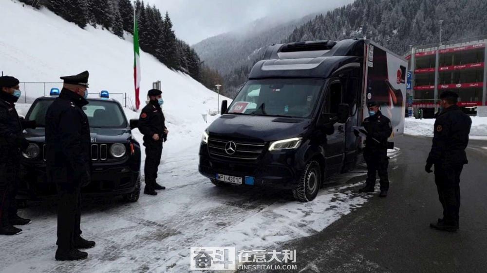 (現場圖:運送疫苗的車輛抵達意大利邊境口岸)
