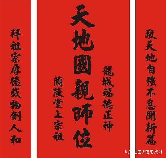 不過,在鎮雄農村,中堂寫天地國親師,還有另一種説法,就是,是寫天地君親師還是寫天地國親師,由主人家自行選擇,但劉、楊、李、趙、朱,這五個姓氏,卻必須寫“天地國親師”。