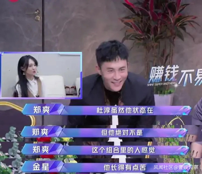 在《追光吧!哥哥》中,金星承擔着主持、類評委和導師的角色,而目前來看,鄭爽則扮演着觀察員的角色。在此之下,給到了鄭爽發表“爽言爽語”足夠寬敞的空間。