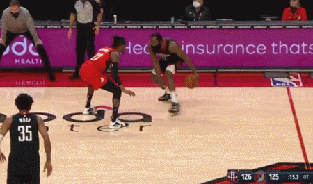 哈登這天只有3次失誤,可是最後一次失誤是把球“傳”給了考文頓,是不是在他的印象中,考文頓還是自己人呢?