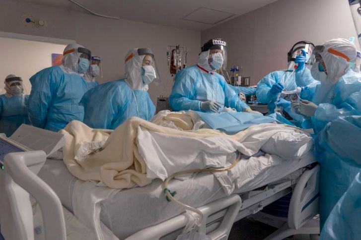 美國醫務人員對一名新冠重症患者進行手術 轉引自《紐約每日新聞》
