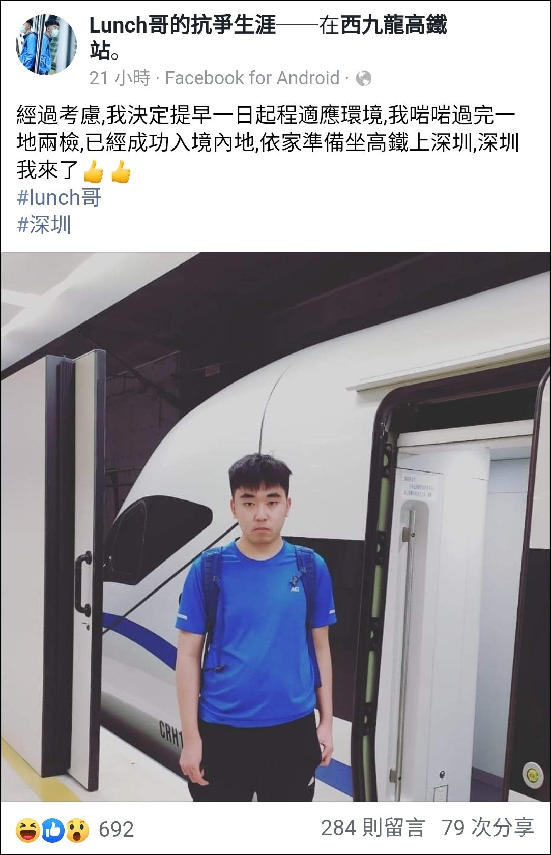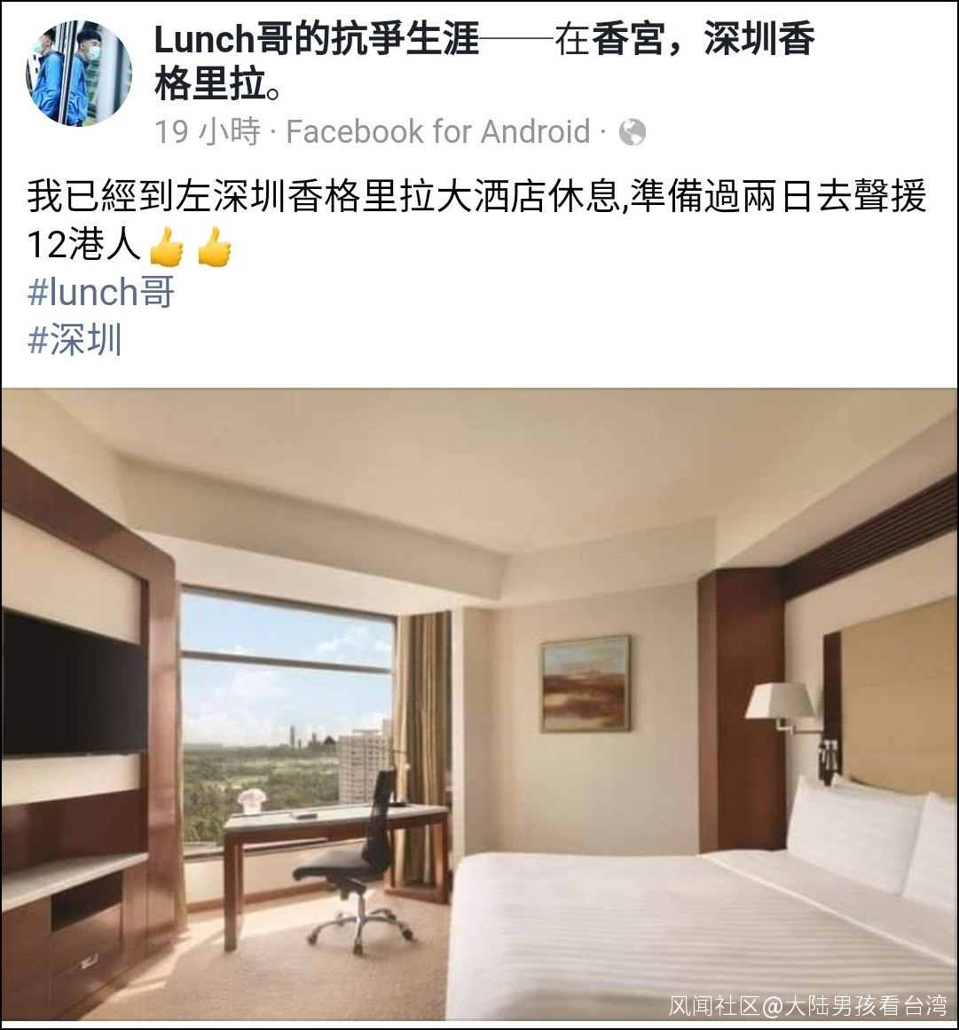 相關動態可見,“Lunch哥”此前於25日發文稱,自己計劃在27日傍晚乘坐高鐵到深圳,在海底撈解決晚餐後入住酒店,在酒店裏做做水療按摩,第二天早上再到關押12名“港獨”分子的監獄申請探監,以實際行動進行所謂聲援。