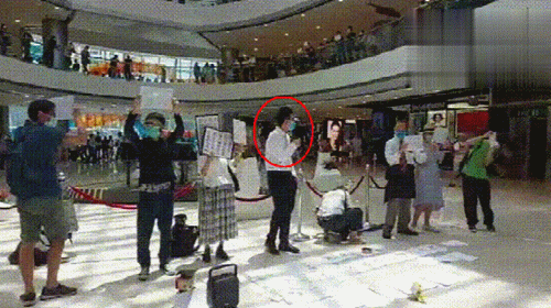 像是今年7月6日,在港區國安法實施後,“Lunch哥”仍然夥同其它幾名示威者在IFC中庭聚集,舉出寫有“港獨”口號的標語並演唱“港獨”歌曲。聽聞警察進入商場,“Lunch哥”直接扔下話筒,假扮路人離開現場,留下同夥傻傻地站在原地。