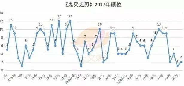 2017年的順位相較於2016年,整體進步了許多,排名第5**(前四位分別是《海賊王》、《我的英雄學院》、《約定的夢幻島》、《黑色四葉草》)**大部分期數都保持在了前十,還有3次登頂第一。