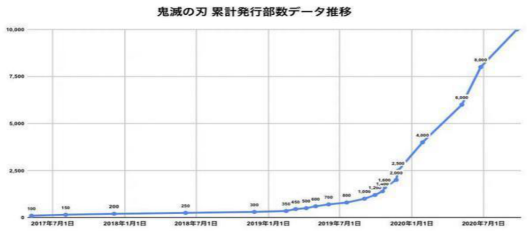 原著漫畫在連載的初期反響平平,並沒有引起太多關注。隨後,《鬼滅之刃》迎來了重要的一個轉折點,即動畫化。從動畫開始放送的一年內,《鬼滅之刃》的檢索數增長了百倍。