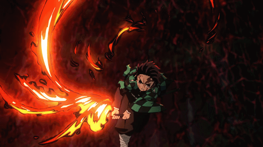 19集中,炭治郎與禰豆子配合作戰,炭治郎用出的火之神神樂,直接讓他和這部作品"一戰封神"。