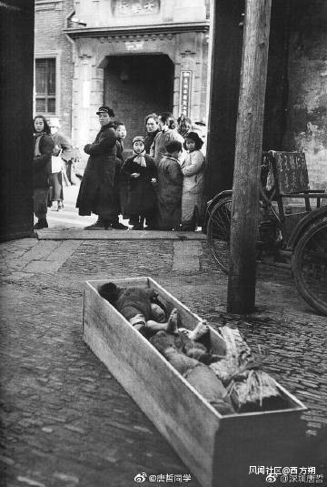 這也是被蔣公徹底拋棄的一羣“人”。戰事吃緊時,他們是包袱。在河南,國民政府肆意掘開大堤,讓他們與日寇同時陷入水火,被當成包袱甩給鬼子,而牽扯鬼子進攻的步伐。圍堵我黨時,被當成工具,肆意擄壯丁,擔心人跑了,用鎖鏈鎖住脖子,為其修築工事,運送物資。最搞笑的是,在長春,還被當成“人質”。