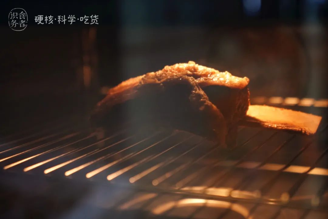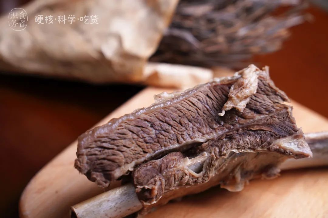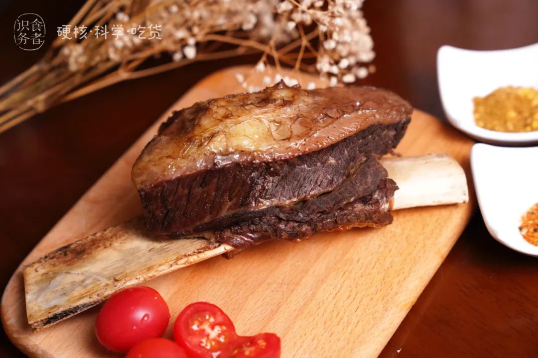 十來分鐘後程序結束,牛肋排拿出來,此時表面已經從原本的灰色變成了褐色,顏色類似牛肉乾,牛肉的焦香風味也被徹底激發出來。