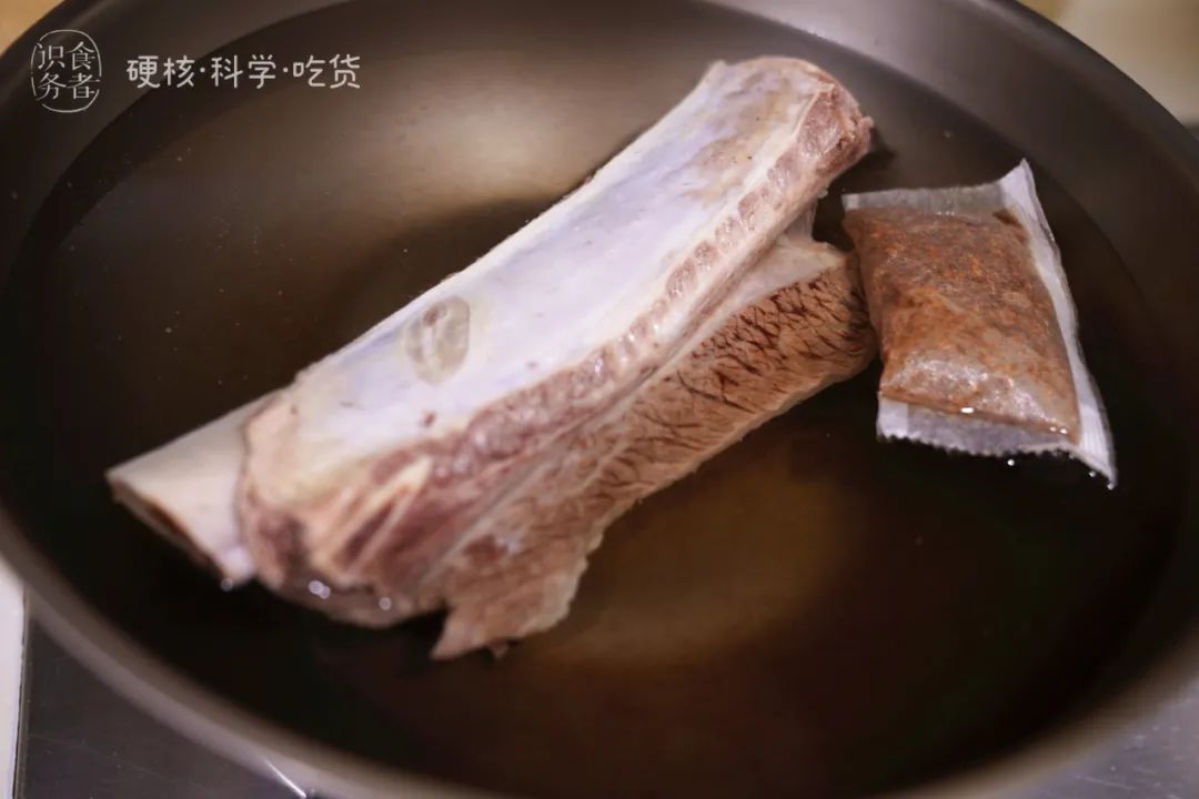 首先牛肋骨充分解凍後,用一整鍋水焯水,去除掉浮沫,記住要冷水下鍋,從牛肋骨下鍋開始,整個過程大概需要15-20分鐘。