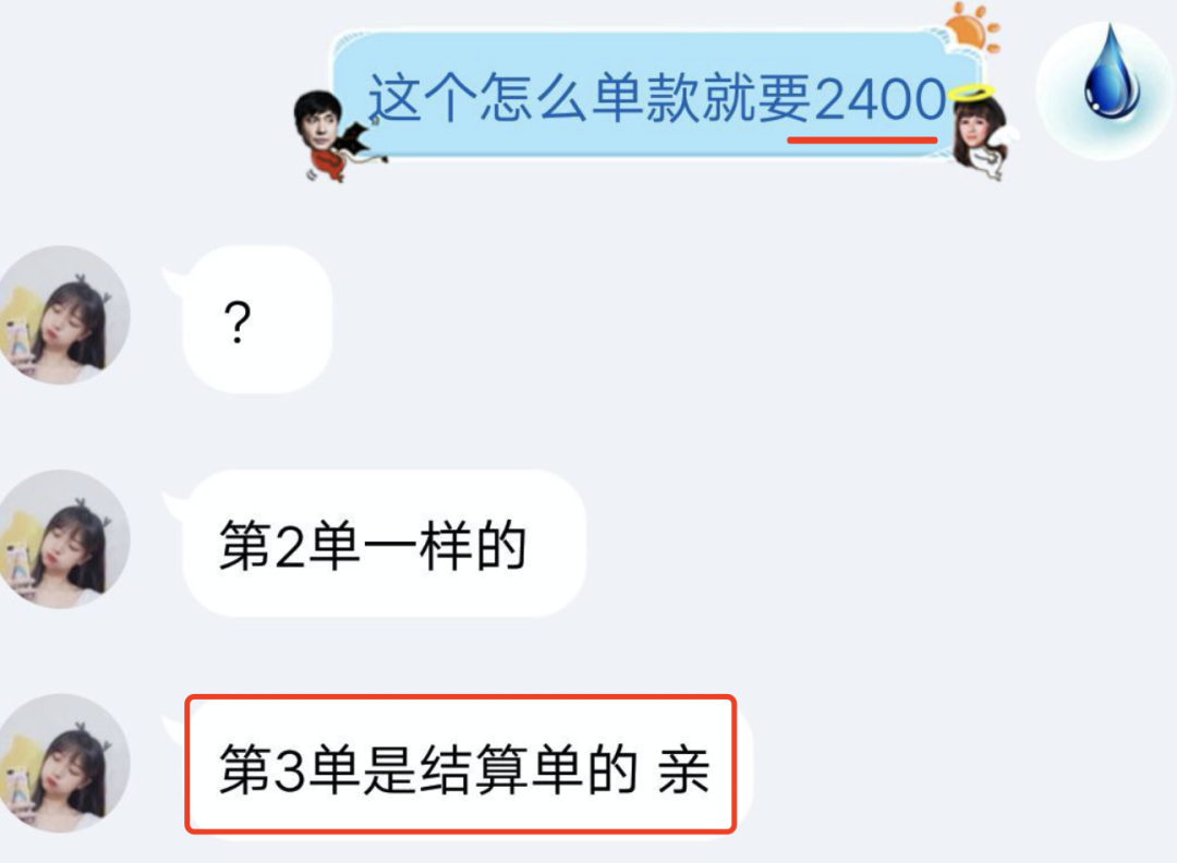 第三單被對方稱為“結算單”,特殊之處就在於,它的金額更大,單個就要2400元。