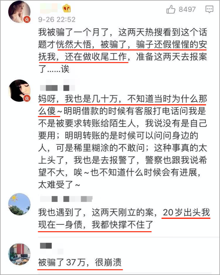 這場變故,讓年紀尚輕的她不知何去何從。經過漫長的思想鬥爭後,她決定把被騙經歷公開。一石激起千層浪,很多人開始在她的微博下面分享自己的遭遇……