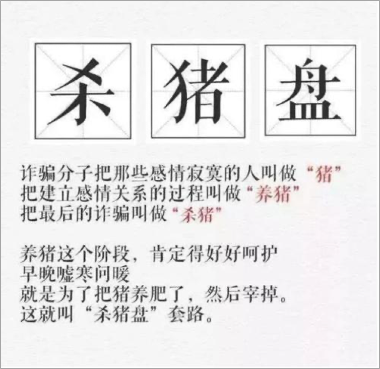 詐騙分子把那些獨自生活,感情寂寞的人叫做“豬”;