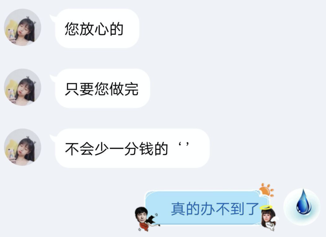 如果受害者中途選擇不做,對方便會以“這是最後一單,做完就可返款”的理由,勸説受害者繼續。此時受害者,考慮到做完後會賺到不少佣金,很多人會孤注一擲,繼續操作。