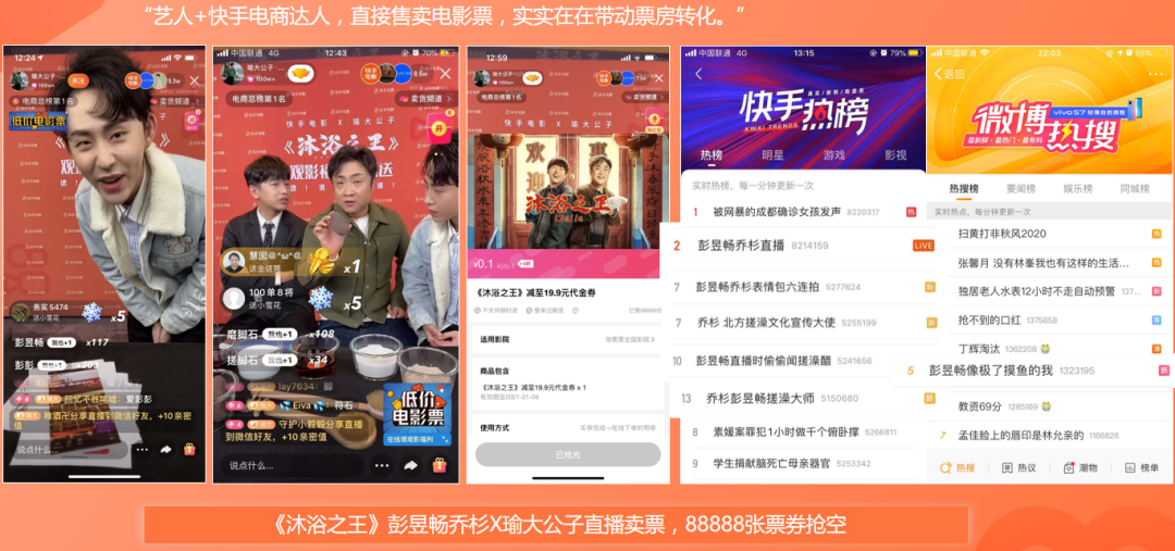 藉助明星、達人們的帶貨能力,將直播和電商相結合,完成票房轉化……