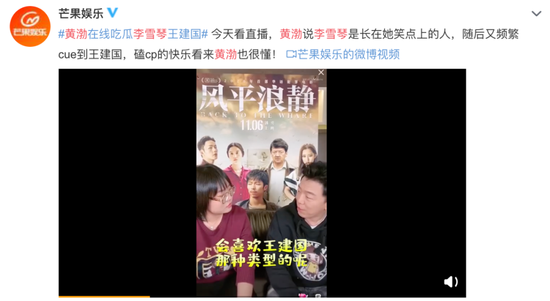 此前在《風平浪靜》的宣傳期間,監製黃渤就選擇了在快手上和李雪琴直播。
