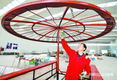 吳橋縣雜技魔術道具產業園的工人在製作雜技道具