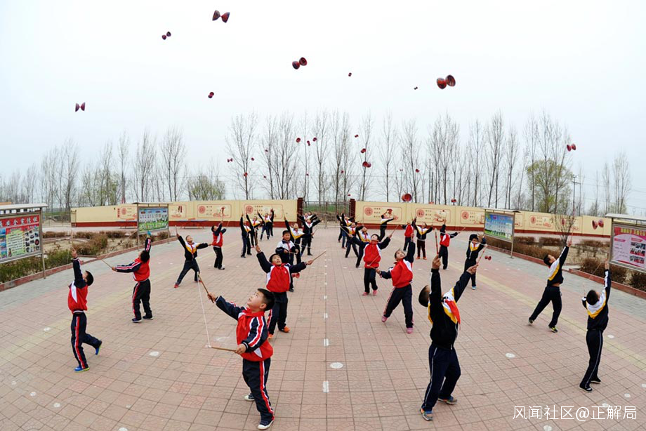 吳橋縣水波小學學生在操場上練習抖空竹 圖片來源:新華社