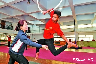 在吳橋雜技學校裏學習的外國學員