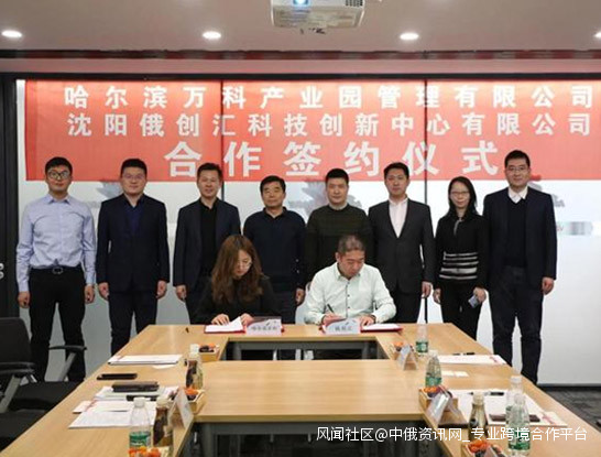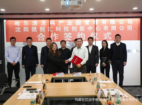 瀋陽俄創匯科技創新中心有限公司董事長李尉磊、總經理常雷,與哈爾濱萬科企業有限公司常務副總經理焦大東、投資總監趙川、哈爾濱萬科產業園管理有限公司總經理朱蕾分別交換意見與展望,就共同推進俄創匯(瀋陽)中俄跨境產業平台孵化器入駐展廳,開展關於中俄產業招商服務,搭建產業服務平台、跨境電商人才創業及就業指導中心,設立俄羅斯產品線下體驗旗艦店,以及對俄的產業政策指引、諮詢、研究等相關內容正式簽訂合作協議。