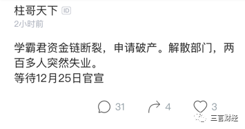 據爆料,學霸君解散部門,兩百多人失業,並且公司將於12月25日正式宣佈破產。
