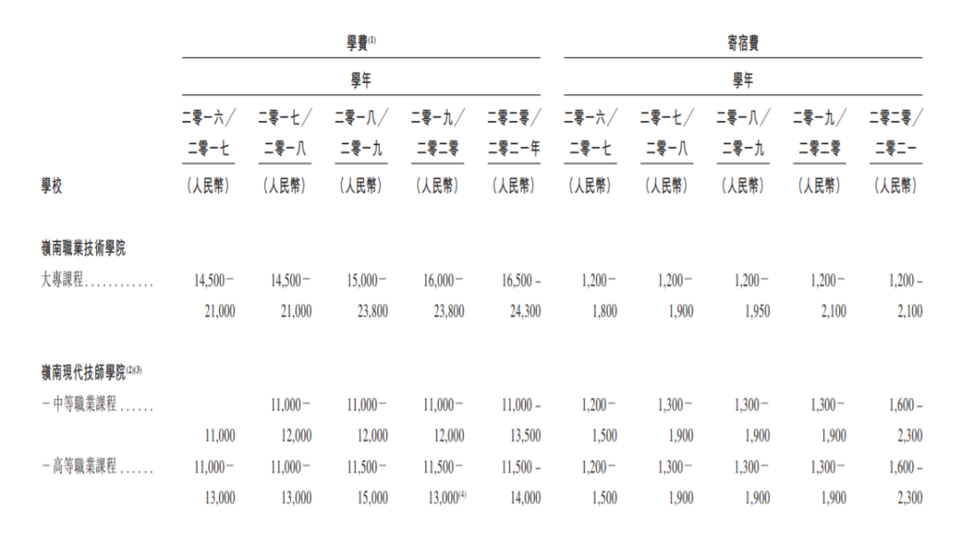 在招股書中,嶺南教育也明確表示,計劃將嶺南職業技術學院由提供大專文憑的專科院校升格為提供學士學位和大專文憑的職業大學,以便提升學校的聲譽及競爭力、提高教學質量、擴大招生並提高學費。對比來看,在學費方面,大專課程的學費水平明顯高於中等和高等職業課程。理論上來説,能夠提供學士學位的確會給嶺南教育的發展帶來更好的提升。
