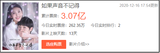 這部電影在網絡平台上沒掀起太多水花,關注的人並不多,但上映13天,累計票房已經達到了3.07億,女主角更是憑藉這部電影,成為了第一個一番女主票房過億的95後小花。