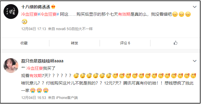 先是收費規則。《冷血狂宴》在騰訊視頻上需要付費觀看,普通用户24元,VIP優惠價12元。