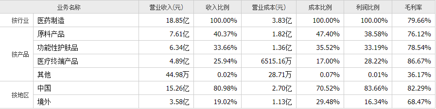 毛利率略低的華熙生物,目前注射用玻尿酸業務稍遜於愛美客,但其在玻尿酸原料、醫美和護膚品全面開花的企業,佈局更完善,相比愛美客屬於“中庸之道”。