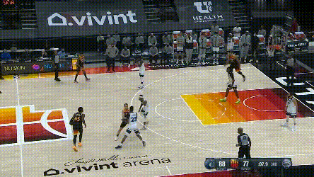 於是這比賽就成了,唐斯防守大閘,戈貝爾內線霸王。配置超級現代化的爵士,反倒是要靠非常傳統的衝板補籃跟森林狼對抗。雖然戈貝爾確實有前板碾壓的條件,但斯奈德教練平時並不怎麼強調這一塊,逼到這個份上,也實在是因為外線太鐵,以及森林狼前場防線太空虛了。