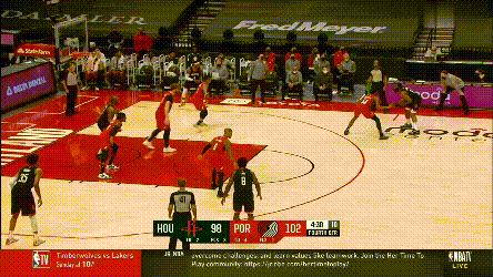 最後火箭丟掉比賽的這次傳球失誤,對面的開拓者依然是這種防守站位。